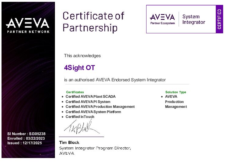 Certified AVEVA Plant SCADA | Certified AVEVA PI System | Certified AVEVA Production Management | Certified AVEVA System Platform | Certified InTouch