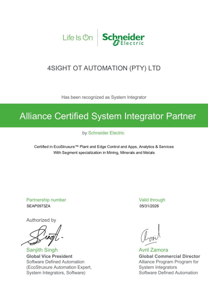 Certified in EcoStruxure™ Plant and Edge Control and Apps, Analytics & Services
